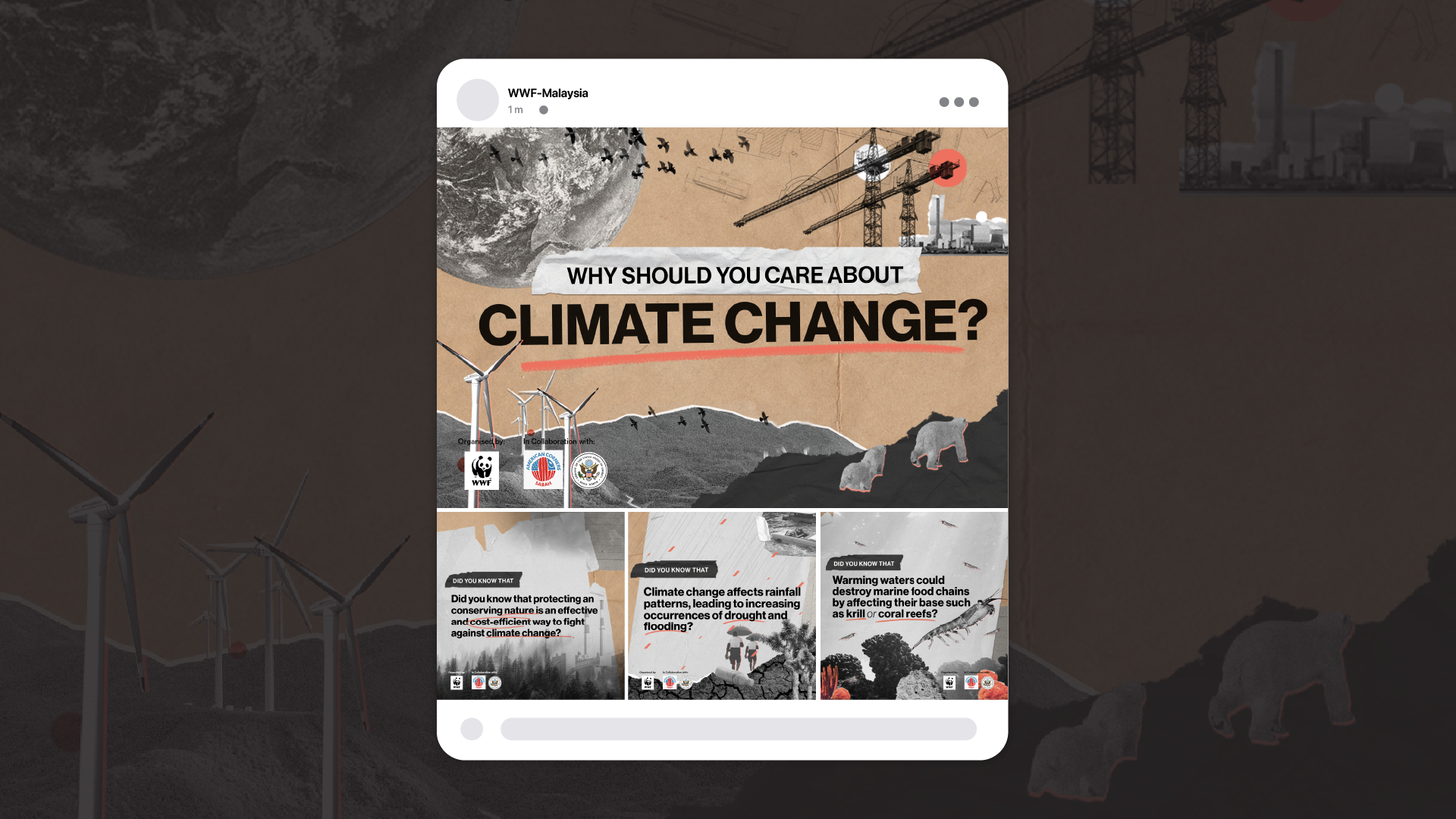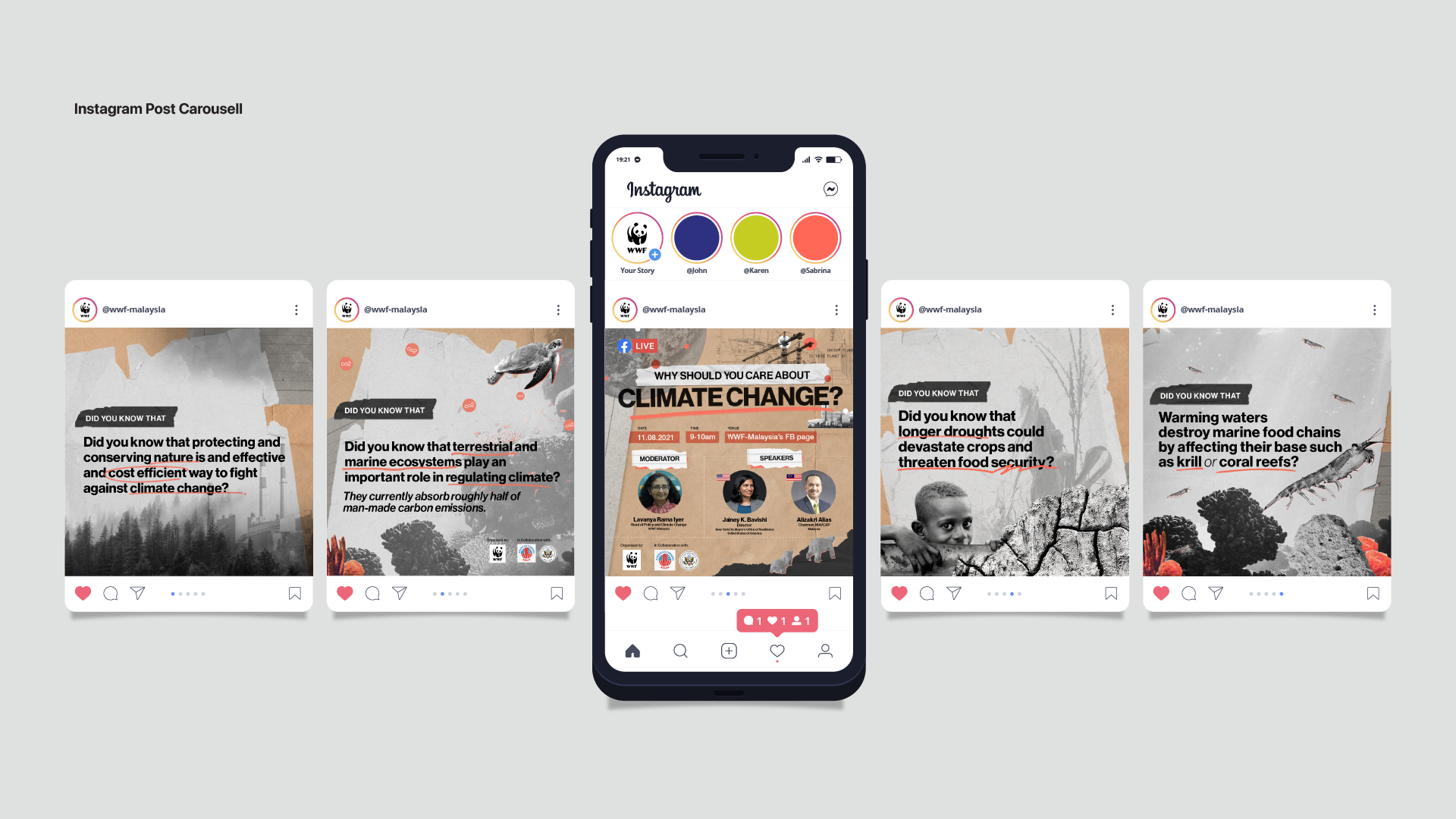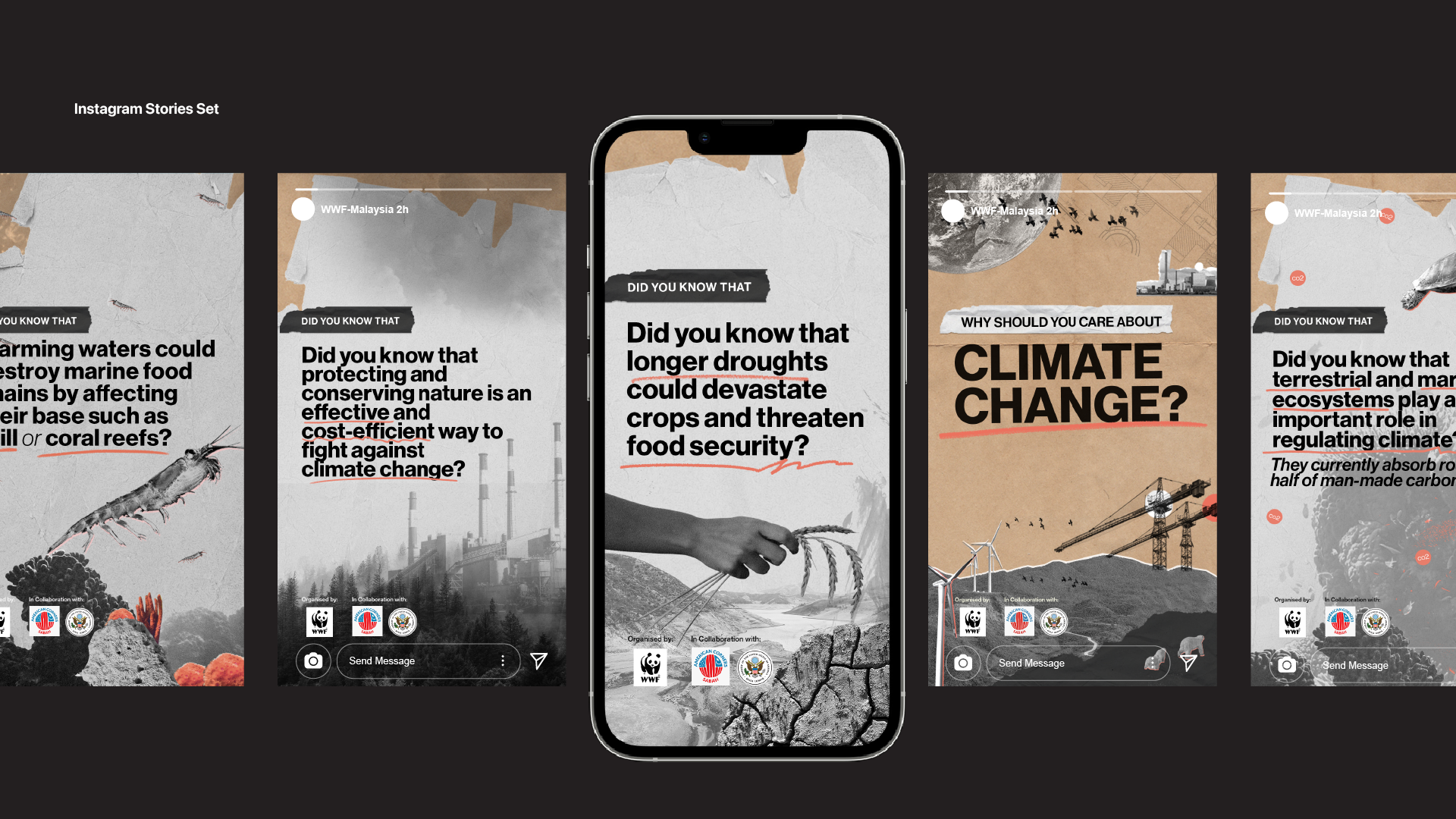 WWF-Malaysia runs a monthly live session during the pandemic to spread awareness about climate issues for 6 months. The deliverables consists of FB Album Post, Instagram Stories and Instagram Posts.