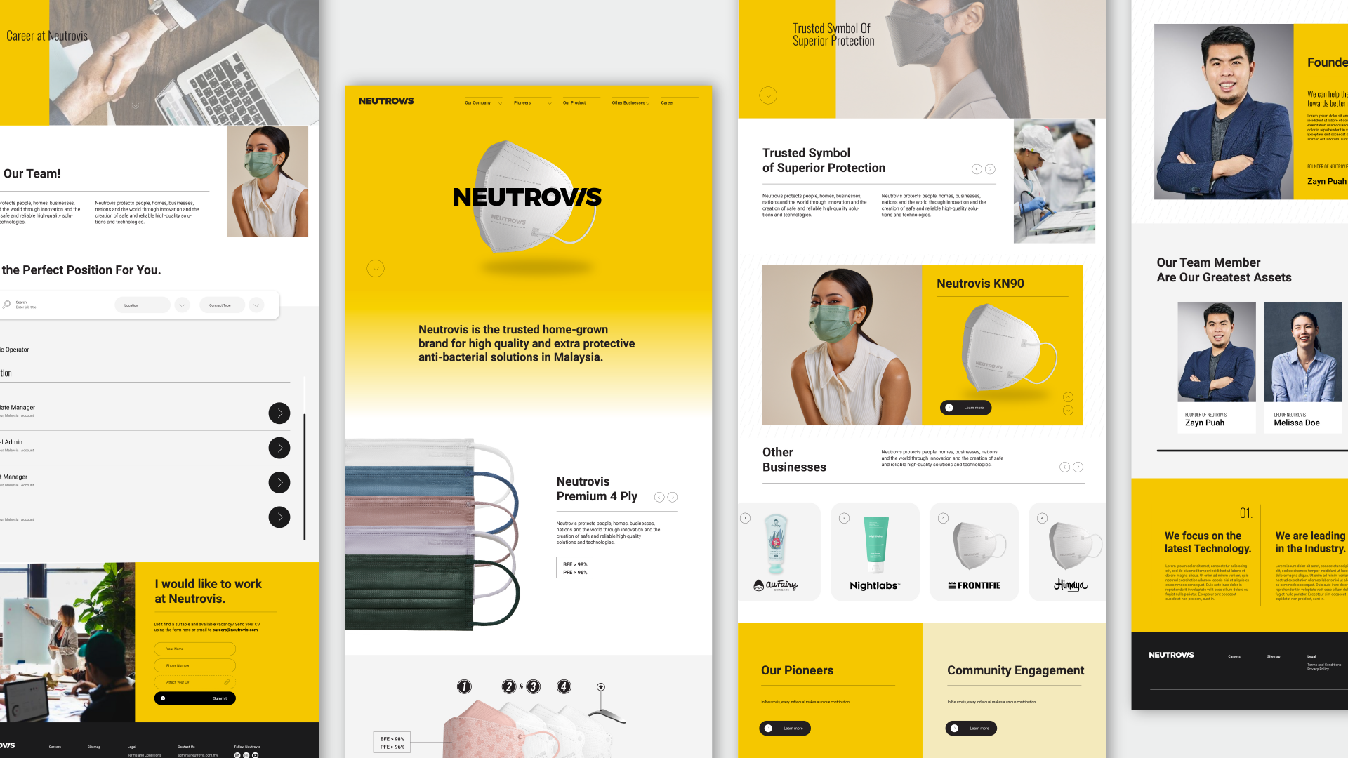 I was assigned to redesign Neutrovis’ corporate website right as they are in the midst of restructuring their brand. The brief was to design a modern and minimalist impression that at the same that shows the brand’s value which is “Trusted Symbol of Superior Protection”, displaying it’s products with a clean and futuristic display carousell that represent somewhat like a online pharmacist lab impression.